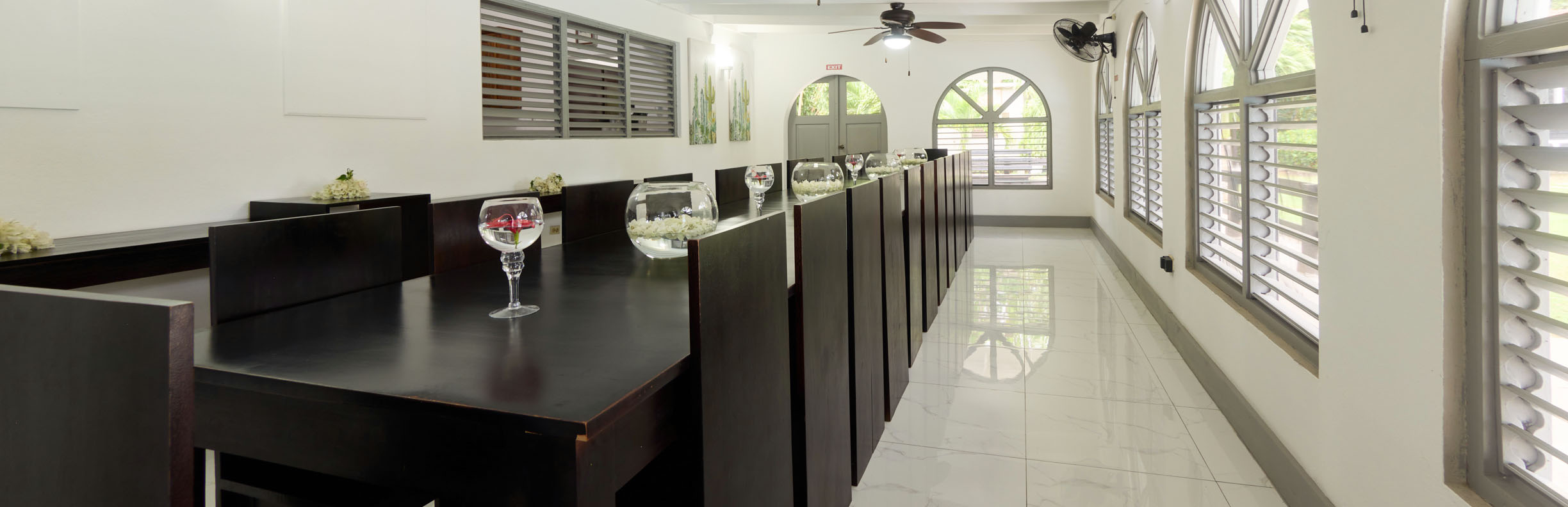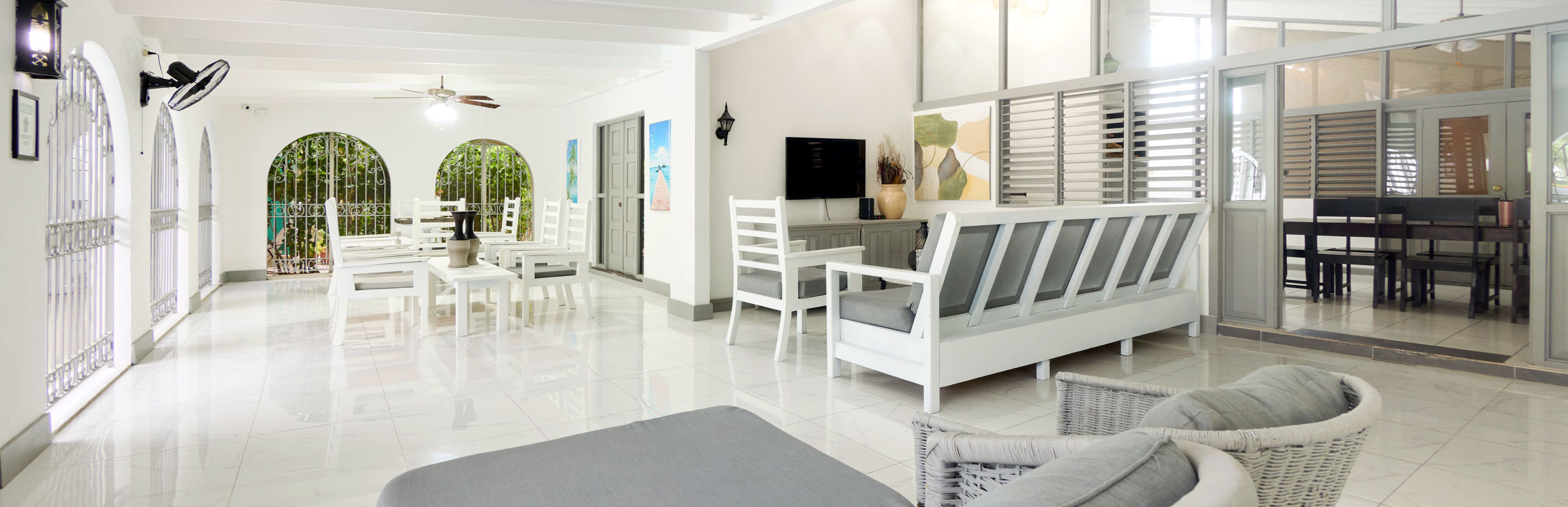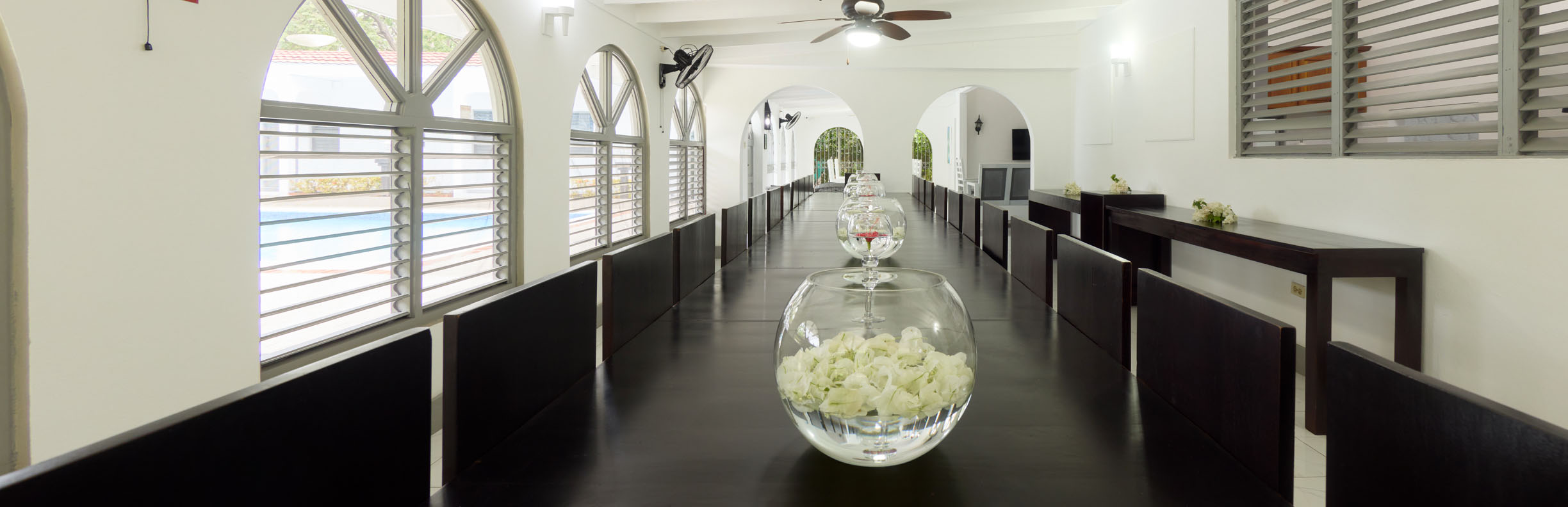 The seven bedroom main house along with the block of six poolside rooms can sleep 32 people. The main house includes your living room, formal dining and a guest kitchen. All reservations include maintenance and housekeeping services including our on property host. Private gourmet chef options available…see below.